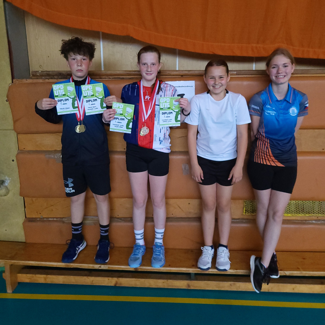 V kategorii starších žáků U-15 udělali v mixovém pavouku pěkný vítr Adam s Lindou Tokarovi. Už ve čtvrtfinále totiž došlo na předčasné finále, kdy se jim po nepříznivém průběhu povedlo otočit velmi těžký zápas proti nasazeným jedničkám Julienu Vogtovi s Melií Hardt 19:21, 24:22 a 21:16 a dál už nenechali nic náhodě a došli si až pro triumf v celém turnaji. Svou skvělou mezinárodní formu Adam prokázal i ve dvouhře, po poctivých výkonech bez větších problémů postoupil ze skupiny, aby v semifinále vybojoval vítězství proti Duy Khanh Thaiovi z Vietnamu 23:21 a 21:19, což rozhodně nebylo utkání pro slabé povahy a kardiaky, aby v neděli ráno sehrál utkání plné dlouhých výměn a útočných úderů proti Ayushmanovi Pandeyovi z Indie. Adam zápas nakonec těsně prohrál 20:22, 21:17 a 16:21, ale po takovém výkonu mohl odcházet hrdý, se vztyčenou hlavou a ověnčený zaslouženým stříbrem. Luky Tomeš i Líza Lancferová bojovali, ale ze svých skupin se jim postoupit nepodařilo. Ve čtyřhře starších žákyň se pak husarský kousek povedl Lindě, která spojila síly se Stinou Spenke (SV Turbine Großenhain). A i když jejich první skupinový zápas proti oddílovým spoluhráčkám Stiny Tesse Posselt a Pie-Sophii Voß nedopadl 18:21 a 15:21, holkám se povedlo postoupit ze skupiny a probít se až do finále, kde opět narazily na Tessu s Piou-Sophií. Tady to však byla úplně jiná písnička, holkám se odveta za skupinu povedla na výbornou a po setech 21:16, 10:21 a 21:13 Linda přidává své třetí zlato z tohoto mezinárodního turnaje, velká paráda! Adam s Lukym i přes jednu výhru ze čtyřhrové skupiny nepostoupili, stejně jako Háňa s Lízou, které taktéž v jednom ze skupinových zápasů sahaly po vítězství.