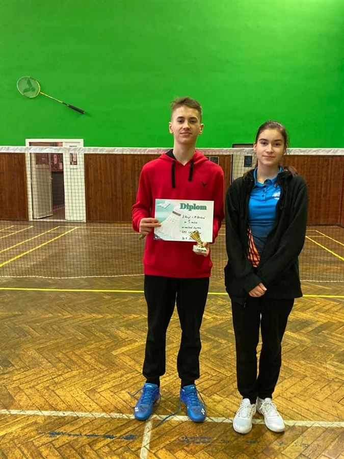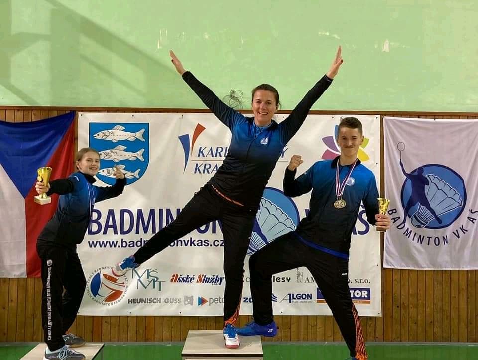 Procvičit si zeměpis až na kraj světa, do nejzápadnějšího koutu, kde můžete v ČR najít badminton, vyrazili sourozenci Sofča a Dennis Kerplovi. A v Aši se jim dařilo báječně, když Sofča zvítězila ve dvouhře na GP C U-13 (párové disciplíny se zde nehrály, nenene) a Denni se blýskl kompletní medailovou sbírkou z GP C U17 – 1. místo ve čtyřhře s brněnským Michaelem Havlíčkem, 2. místo v mixu s kladenskou Malvínou Skrčenou a 3. místo ve dvouhře!