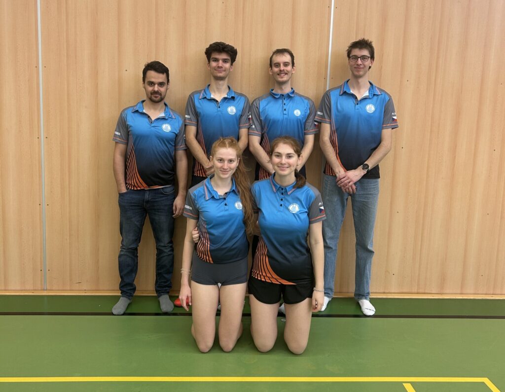 V mixu jsme opět nebyli úspěšní, ale Honzovi s Háňou nechybělo málo. Mohlo být hotovo již ve dvou setech, ale ztráta vedení 11:3 v prvním setu vyústila v neúspěšný “tříseťák” proti Martinu Nevečeřalovi a Tereze Appelové 19:21 21:14 21:23. Další velmi těsná bitva se odehrála mezi Timem a Michalem Weinerem, avšak opět neúspěšně pro nás i přes bojovnost Tima 19:21 21:19 20:22. První bod přišel, když Franta s Honzou vyzráli na Lukáše Nevečeřala a Michala Weinera ve dvou setech, aby následně zabodovaly i holky ve čtyřhře proti Terezám Raditsch a Appelové. Sára ve dvou setech lehce přehrála Raditsch, ale Vojta tentokrát jako “dvojka” nestačil na Ondřeje Vavřičku, v druhém setu chybělo opravdu málo 18:21, a ani s Timem se mu nedokázali pomstít, když nastoupil s Martinem Nevečeřalou. V posledním zápase tak bylo na Frantovi, aby uhrál pro náš tým alespoň remízu a povedlo se mu to ve dvou setech 21:11.