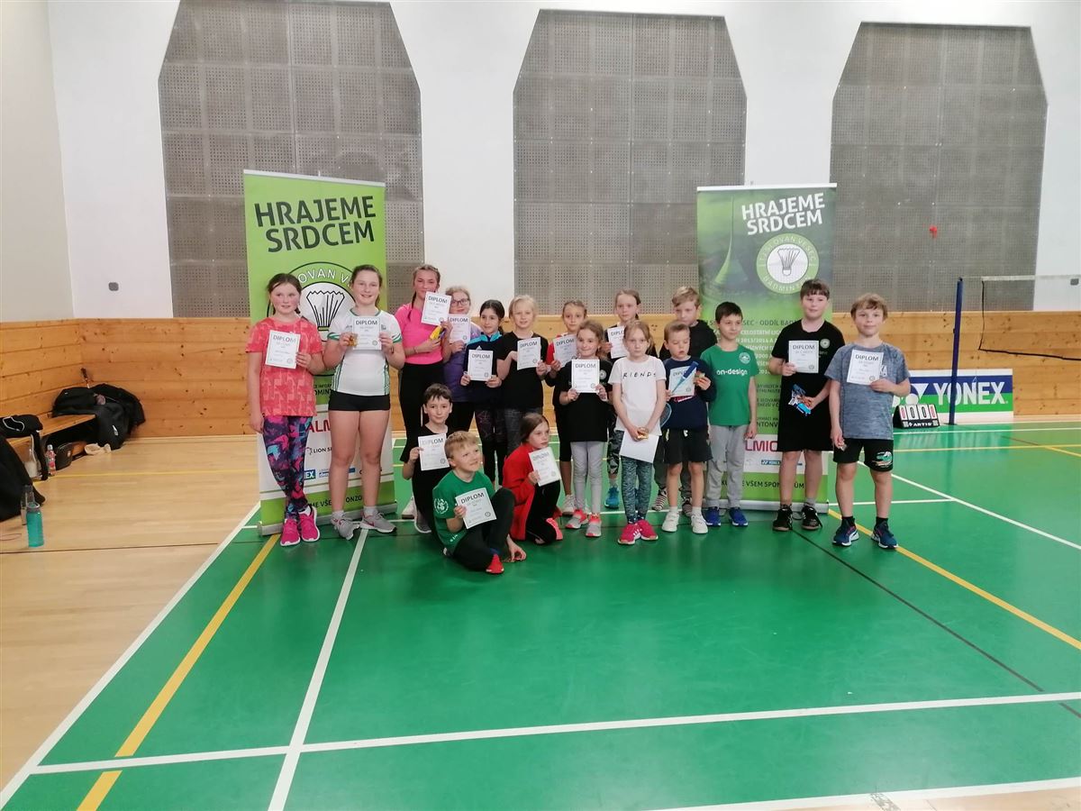 V sobotu 18. března jsme v domácí hale Badminton u Muzea pořádali GP C kategorie U-17. Sešla se konkurence solidních 12 chlapců a 11 dívek, mezi nimiž nechyběla ani naše sedmička Sofi Kerplová, Esi Králová, Eliška Nidrlová, Kája Tomešová a Denni Kerpl, Vojta Marek a Míša Nidrle. Pozitivem je, že se všem našim hráčům povedlo získat nějaký ten cenný kov, výjimkou byla bohužel Esi, která turnaj nedohrála, tak snad bude brzy v pořádku. Když bychom vyhlašovali hvězdu turnaje, byl by to Denni, který neprohrál žádný svůj zápas a připsal si kolekci třech zlatých medailí, když v mixu mu vypomohla sestra Sofi a v deblu Václav Burkovec z Benátek nad Jizerou. Ve dvouhře se dařilo ještě Vojtovi a Káje, kteří si vybojovali shodně třetí místo. Ve čtyřhrách pak zasloužené stříbro přidali Vojta s Míšou a bronz Eliška se Sofi.