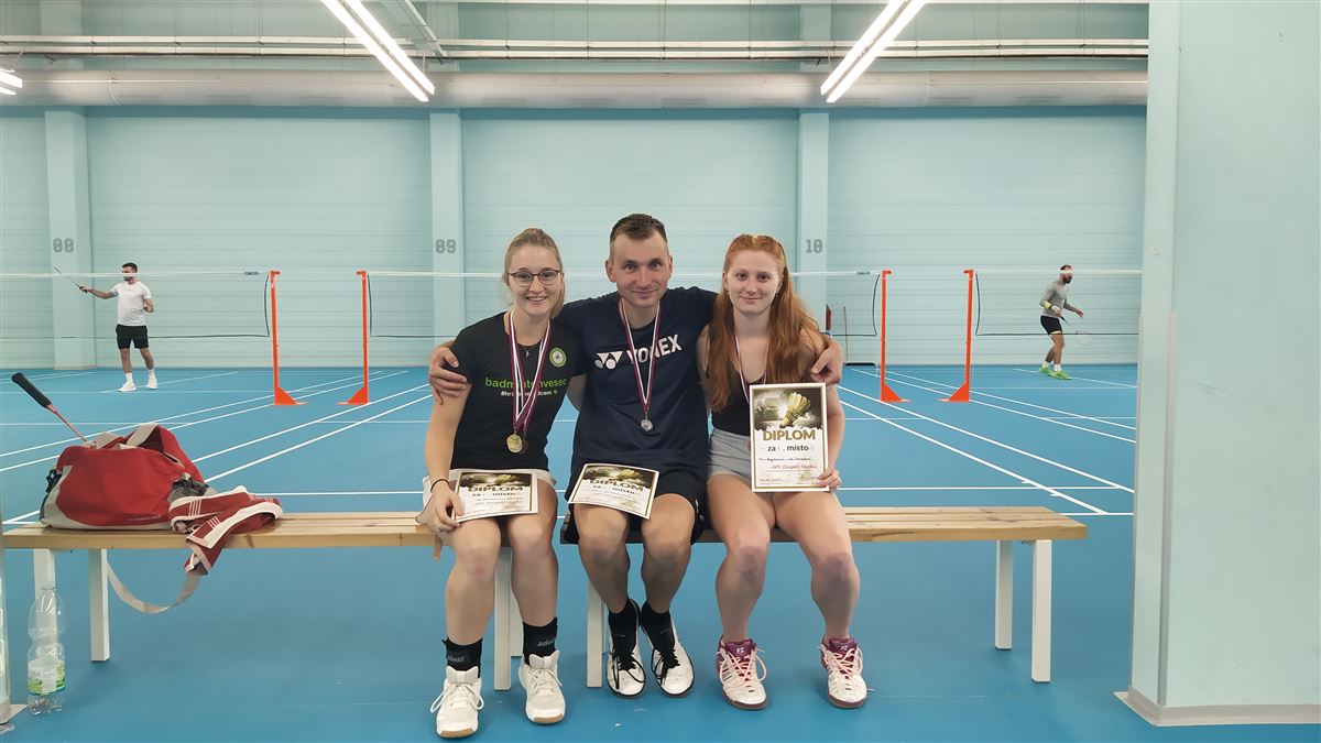 První poprázdninový republikový turnaj GP A uspořádal BK Meteor Praha v tělocvičně vinořské základní školy a své síly zde změřili hráči mladšího dorostu U-17. My sem vyslali rovnou trojici borců Denni Kerpl, Vojta Marek a Míša Nidrle, děvčata se nám do soutěže tentokrát nevešla. Nejvíce se dařilo prvně jmenovanému, který si po zdařilých výkonech vybojoval rovnou dva vzácné bronzy. První si po vítězstvích nad královédvorským Ondřejem Tichým, herně se stále zlepšujícím brněnským Šimonem Klecerem a nebezpečným kopřivnickým Jakubem Raškou připsal ve dvouhře, druhý blyštivý kov na Denniho konto putoval ve čtyřhře s Kubou Bouberlem z TJ Sokol Vodňany, moc gratulujeme! Vojtovi, ani Míšovi se vítězství připsat nepodařilo, a tak si odváží alespoň zkušenost, na čem musí do příště zamakat.